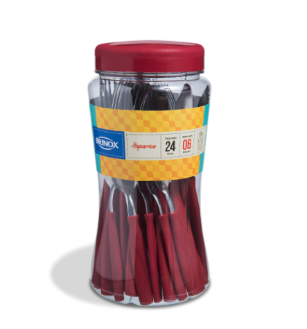 JUEGO DE CUBIERTOS BRINOX - 24 Piezas WARM GRAY ITAPARICA - Colores ROJO - NEGRO