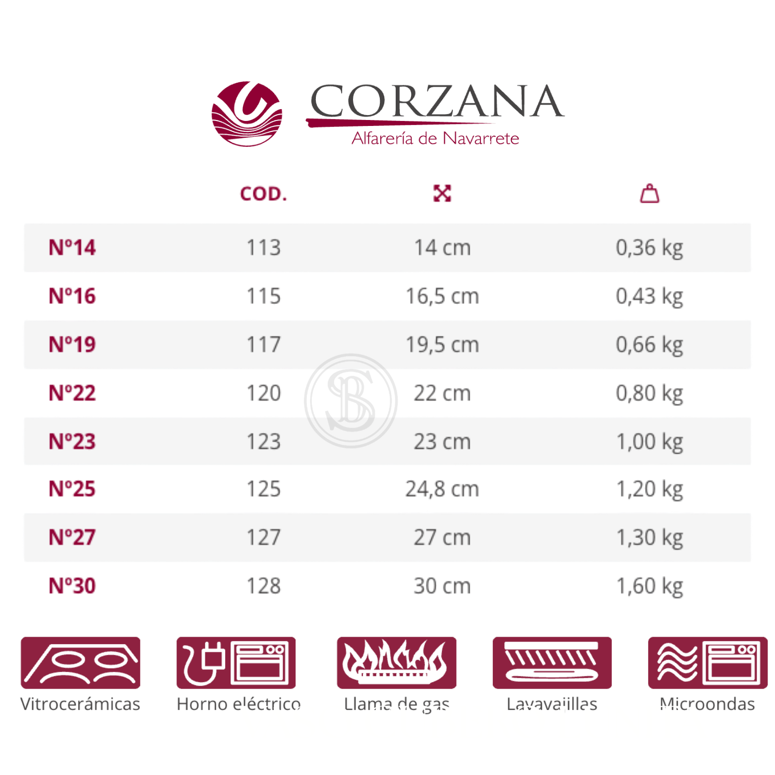 Cazuelas de vitro cerámica 2 asas. Desde Ø 14 cm. hasta Ø 30 cm.