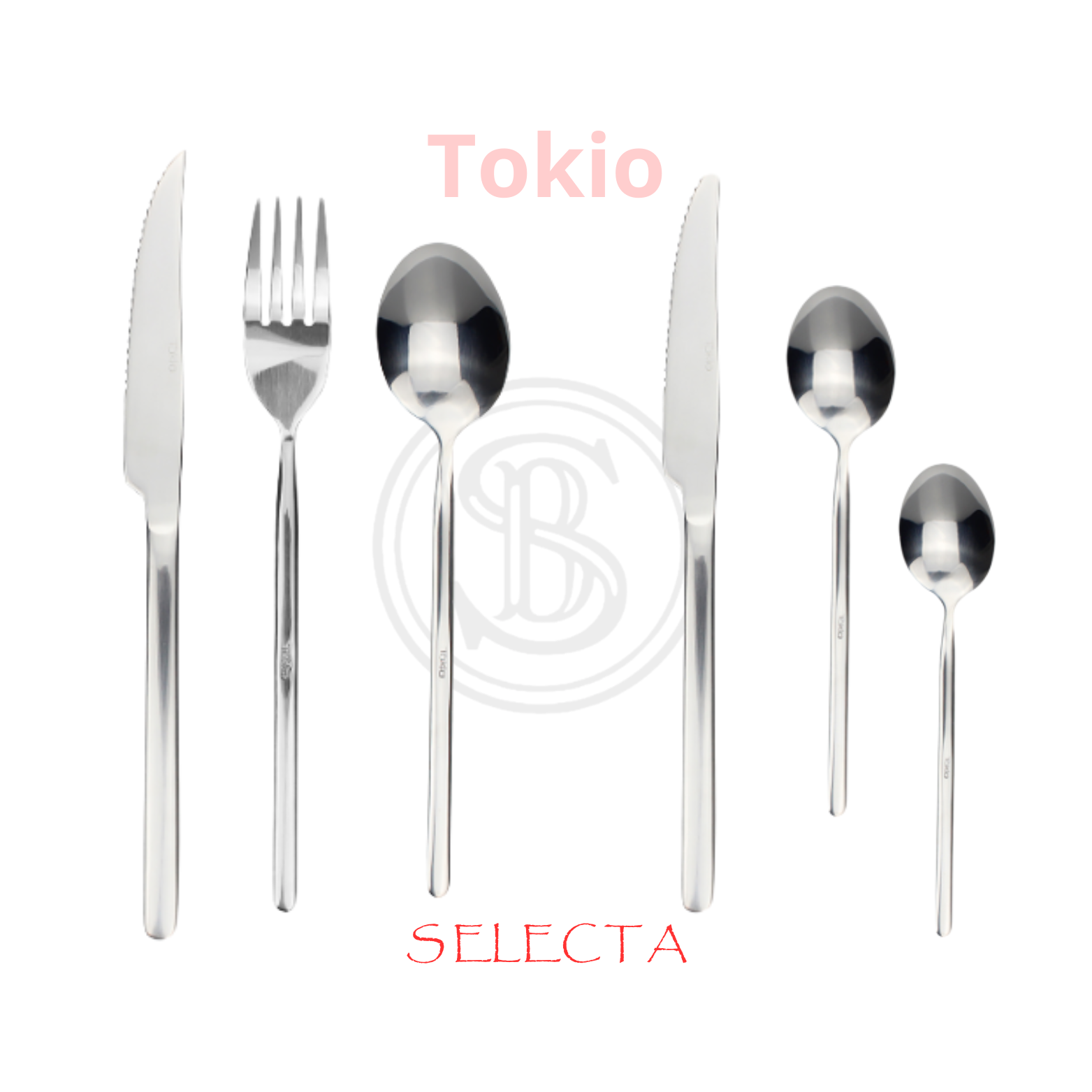 Cuchillos mesa, asado, postre. Tenedor mesa, postre. Cuchara mesa, postre, café y té.